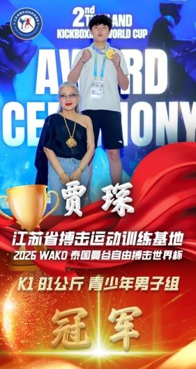 贾琛能够在国际赛场取得优异成绩,离不开学校与训练基地的双重支持。江苏省锡山高级中学实验学校始终坚持五育并举的育人理念,大力支持学生发展体育特长,为贾琛协调学业与训练安排提供了充分保障,鼓励学生在学好文化知识的同时追逐体育梦想。江苏省搏击运动训练基地也为贾琛配备了专业教练团队,针对青少年的身体发育特点定制训练计划,不断打磨技术水平,为此次出征世界杯打下了坚实基础。